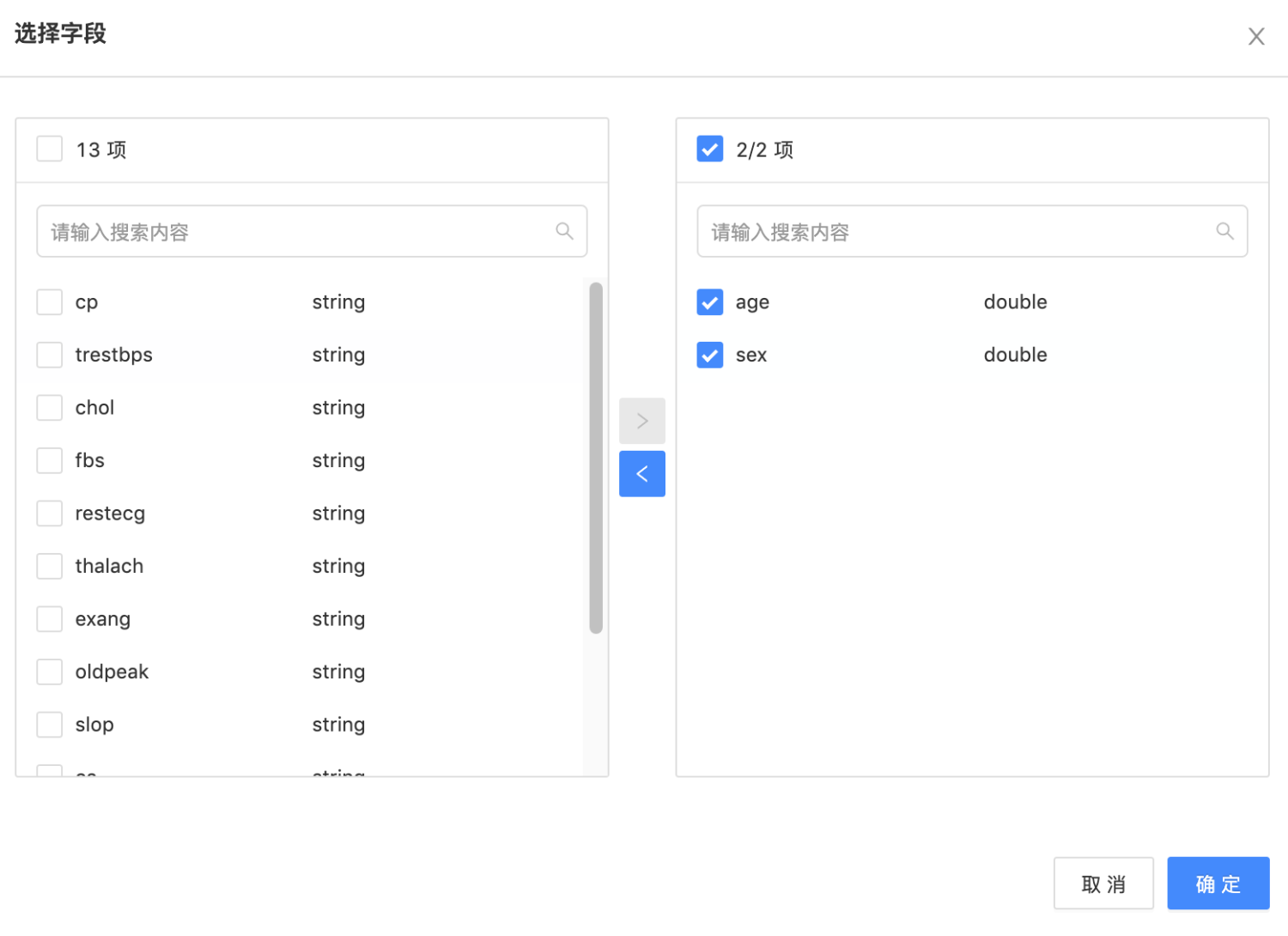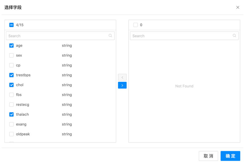 选择特征列: 特征列,必选,多选