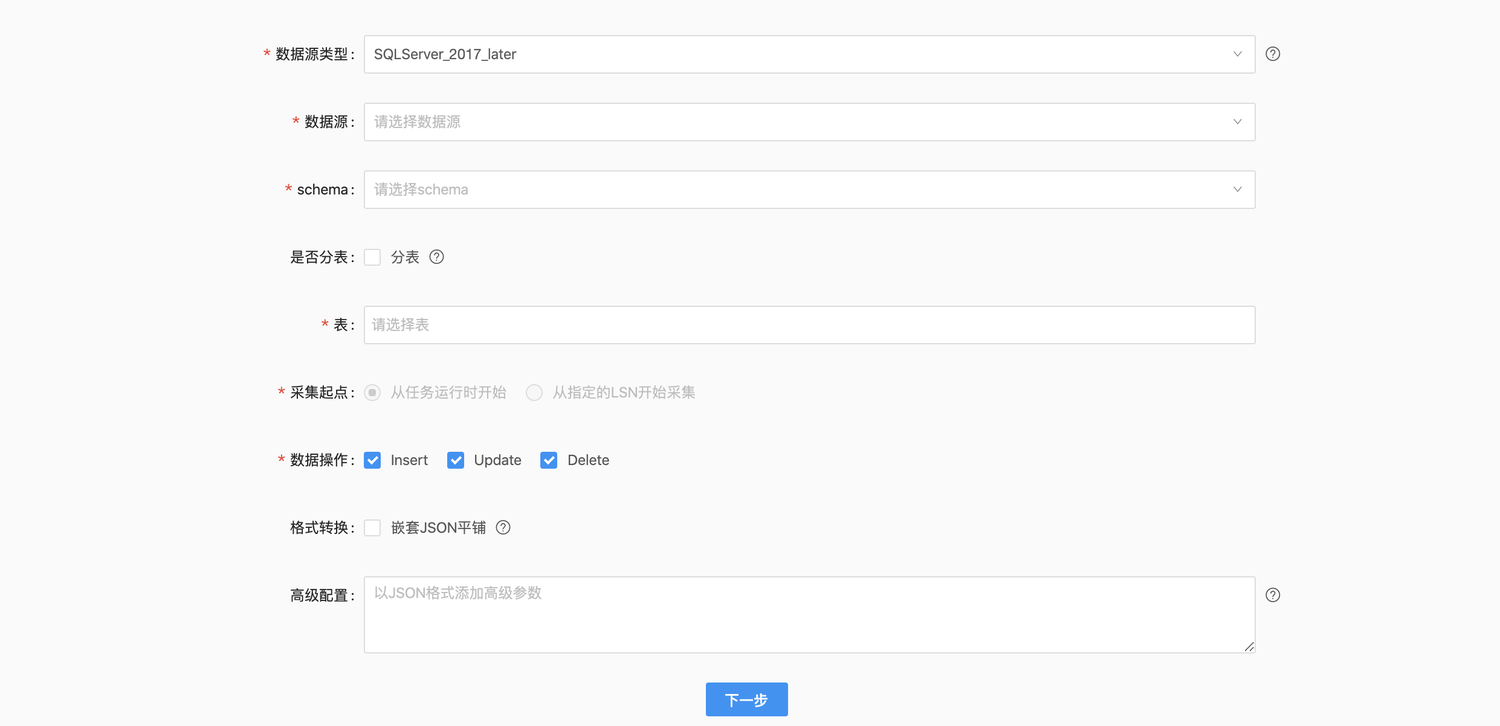 当前实时开发中目前区分为「SQLServer」和「SQLServer JDBC」两种数据源,当用户选择「SQLServer」时,支持通过间隔轮询方式进行实时采集;当用户选择「SQLServer JDBC」时,支持通过CDC日志进行实时采集。
